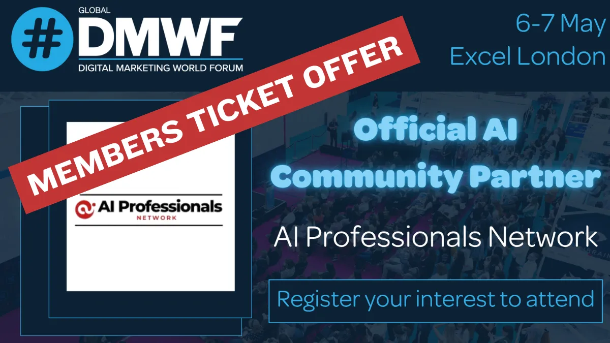 By checking this box, I consent to receive further details on this offer and other relevant marketing and promotional emails from AI Professionals Network and Practical AI for Business. I understand that I can unsubscribe at any time and my details will not be passed to non-related third parties (except DMWF for this ticket offer only).